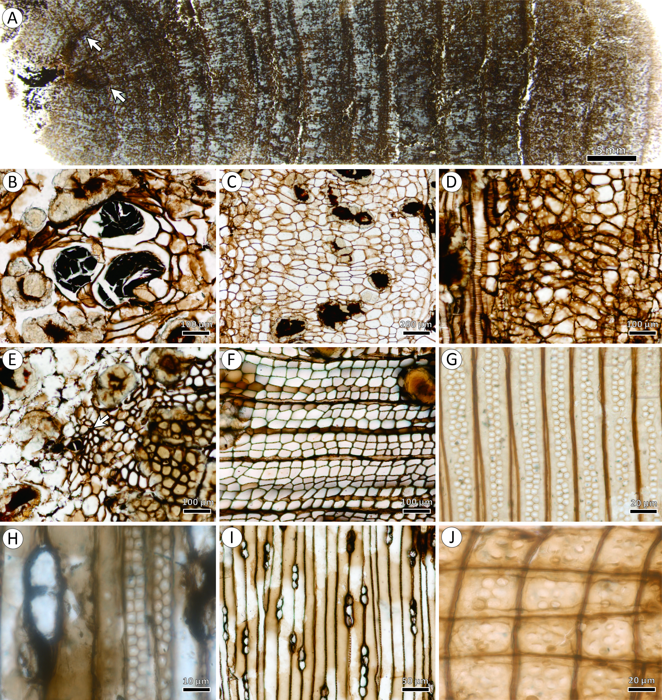 木化石是地质历史时期植物茎干化石的统称,通常保存了精美的解剖结构。木化石解剖学不仅可为认识远古时期植物多样性、群落组成面貌以及木材演化提供直接证据;同时,还可为认识古气候、古环境、古生态以及深时陆地生态系统重建与演替提供重要线索。