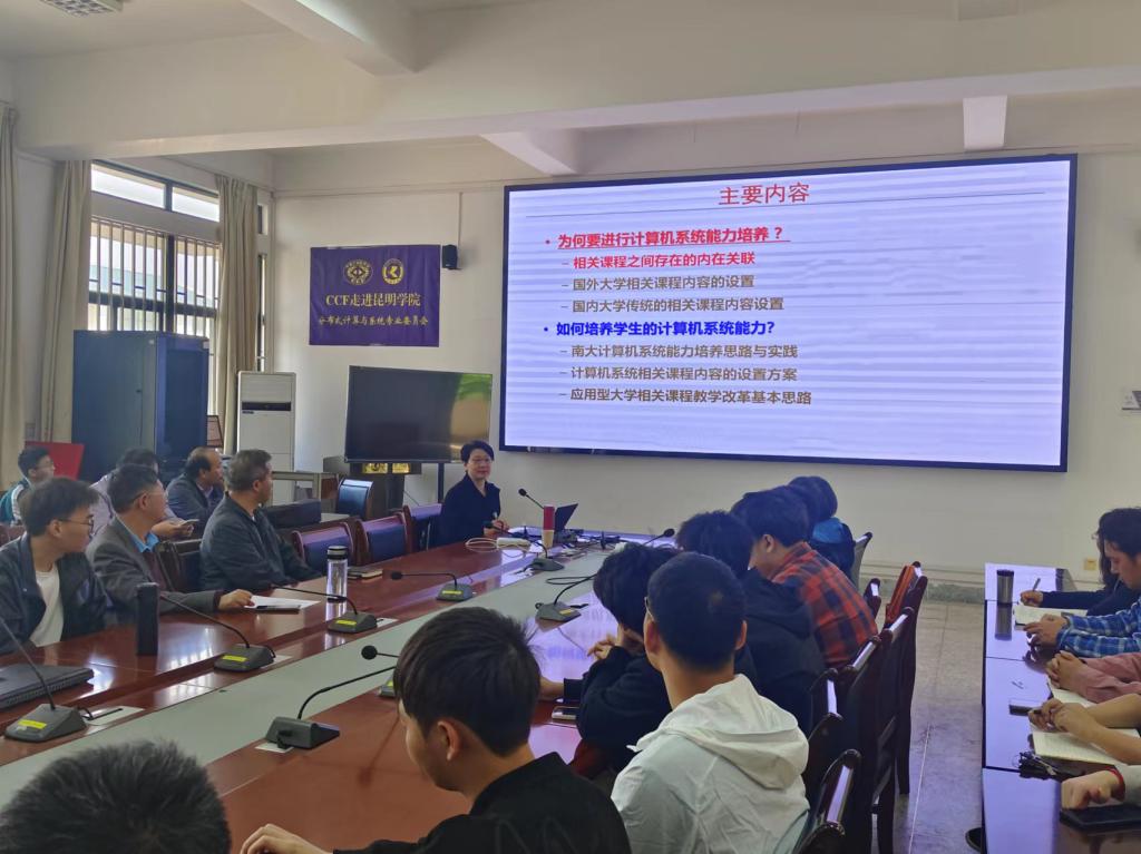 讲座介绍了国内外大学进行计算机系统能力培养相关情况以及南京大学过去十多年来进行相关教学改革的实践和成效,与师生探讨了应用型高校计算机类专业系统能力培养目标及相应的计算机系统类课程体系框架、相关课程教学内容和实验方案。