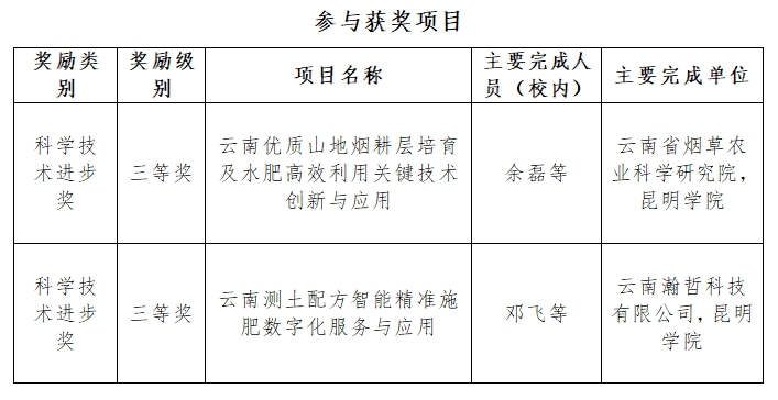 近日,云南省人民政府发布了《云南省人民政府关于2023年度科学技术奖励的决定》,beat365官方网站3项成果获2023年度云南省科学技术奖(自然科学奖),其中二等奖1项,三等奖2项。此外参与项目获得科学技术进步奖三等奖2项。