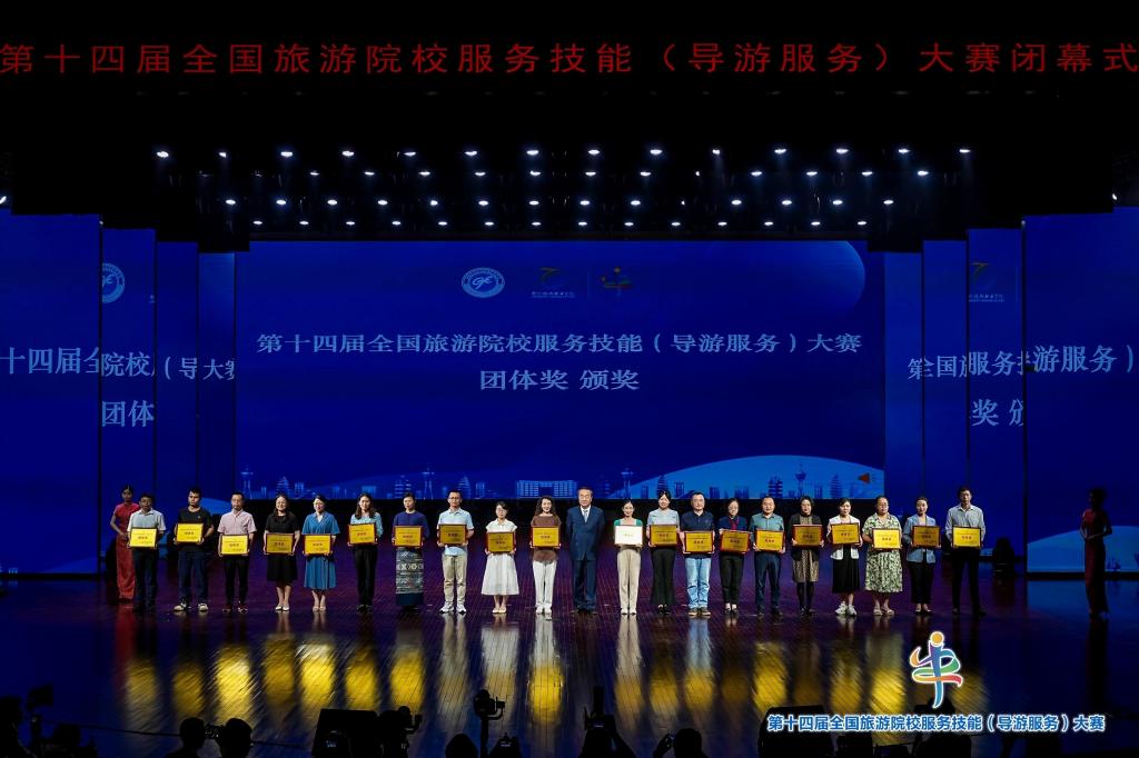 第十四届全国旅游院校服务技能(导游服务)大赛,由文化和旅游部市场管理司、中国旅游协会指导,中国旅游协会旅游教育分会主办,郑州旅游职业学院承办。5月23日至27日,来自全国30个省(自治区、直辖市)303所高等院校和中职学校的883名选手,齐聚郑州,共襄盛举。比赛设普通话导游服务和英语导游服务两个项目,每个项目,由理论考核、导游讲解、专题讲解、才艺展示四个部分组成,全面考查学生的综合能力。经过激烈角逐,旅游学院2023旅游管理专升本班学生朱一豪荣获中文组一等奖,并以优异表现位列中文组得分第十名;2023级酒店管理专升本班学生吴照文获得英语组一等奖,实现了旅游学院在英语组一等奖上零的突破;2023级旅游管理专升本班学生朱优、费凡分别荣获中文组和英文组二等奖。旅游学院以团体总分第十三名的成绩荣获团体奖,为旅游管理专业自参赛以来的最好成绩。