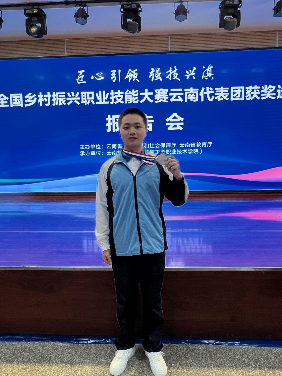 5月23日,云南省人力资源和社会保障厅举行“第二届全国乡村振兴职业技能大赛云南代表团获奖选手先进事迹报告会”,深入学习贯彻习近平总书记对技能人才工作的重要指示精神,全面落实党中央决策部署和省委、省政府工作要求,围绕全省技能人才队伍建设成效及大赛取得的佳绩,宣传获奖选手技能成长成才故事。马肖在报告会上作先进事迹报告,分享其学习参赛经历、技能逐梦历程,讲述努力拼搏、刻苦钻研,用坚守和执着站上全国技能巅峰的成长事迹,为广大师生和劳动者提升技能坚定了信心、树立了榜样。