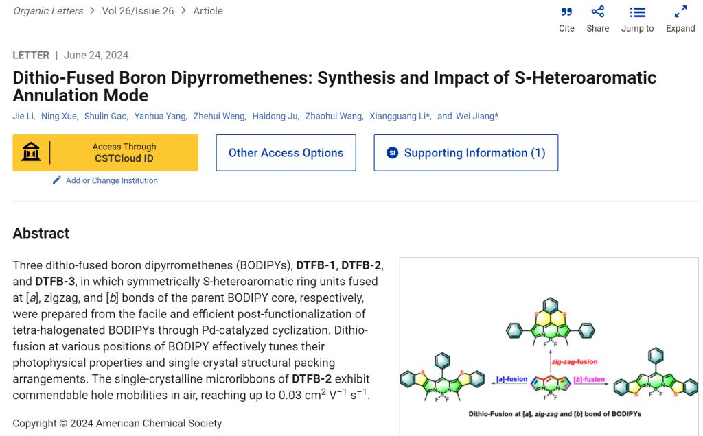 【成果1】二硫稠合BODIPYs:S-杂芳环化模式的合成及影响