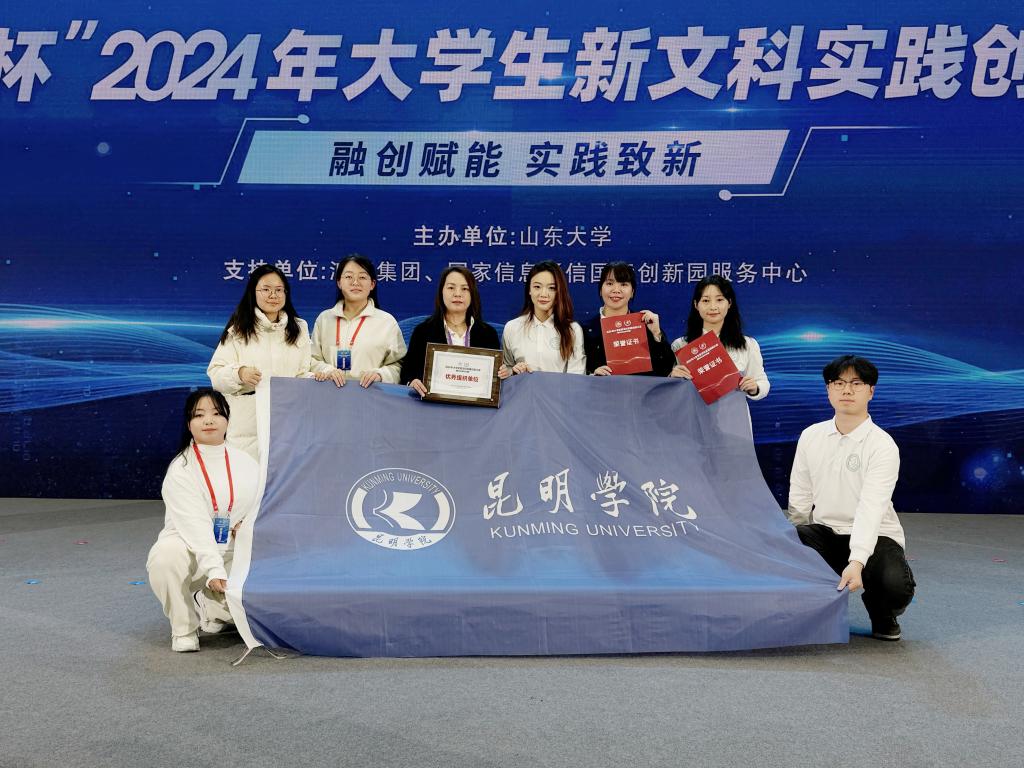 大赛经过网评,共遴选出319所高校404个项目进入决赛。云南省共有5所高校12个项目进入总决赛现场赛。beat365官方网站8个项目入围国赛,其中3个项目进入总决赛现场赛。人文学院李歆老师带队赴济南参加现场赛。经过激烈的竞争,孙雪莹老师指导的《守匠心 传非遗》项目荣获国家金奖,李烨老师指导的《简牍述云南》和曾慧老师指导的《星言心语--学前特殊儿童融合支持的引领者》2个项目荣获国家银奖。beat365官方网站荣获“优秀组织奖”,孙雪莹老师荣获“优秀指导教师”。学校在本次赛事的获奖数量和赛事入围数目,位列云南省第二,较好展现了新文科教学成果和学生创新实践能力。