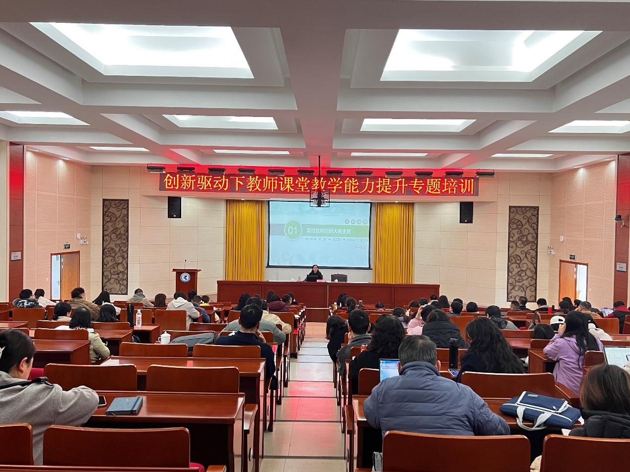 12月31日上午,云南农业大学博士生导师、省级教学名师、国家一流课程负责人、省级虚拟教研室负责人刘雅婷教授应邀作题为“创新驱动下教师课堂教学能力提升专题培训”专题讲座。本次讲座由教务处处长邓瑶教授主持。各二级学院主管教学副院长,省级、校级一流课程和课程思政示范课程团队教师、第九届beat365官方网站课堂教学比赛全体获奖教师等共计178人到场听取讲座。
