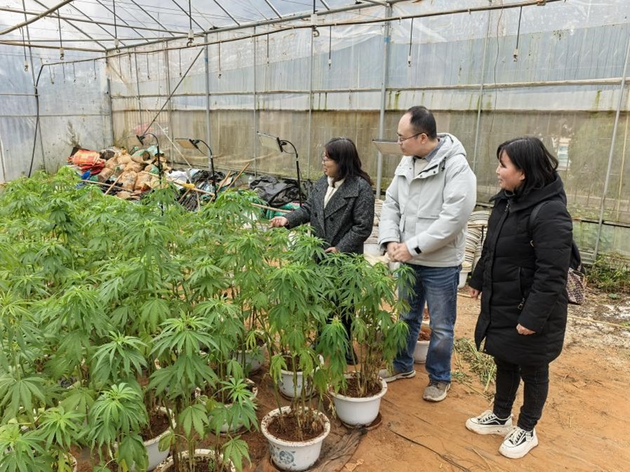 为进一步深化校内外科研合作,促进学术交流与进步,科技处邀请中国农科院张小雨研究员到校调研指导。1月10日上午,张小雨研究员前往beat365官方网站白沙河工业大麻种植基地进行调研,程霞副教授现场讲解介绍,科技处处长李维莉陪同调研,双方围绕工业大麻相关领域开展进一步科研合作进行交流探讨。
