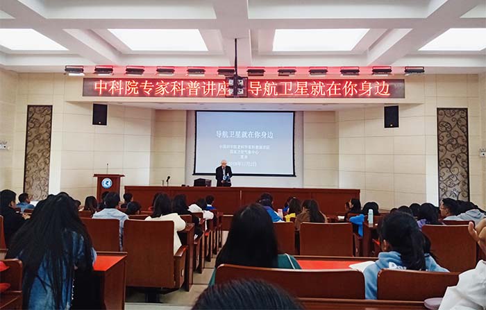 11月2日,物科系联合学校图书馆在办公楼D区报告厅开展题为“导航卫星就在你身边”的科普讲座。讲座邀请了中国科学院夏青教授主讲。物科系2016级、2017级和2018级约200名师生聆听了讲座。
