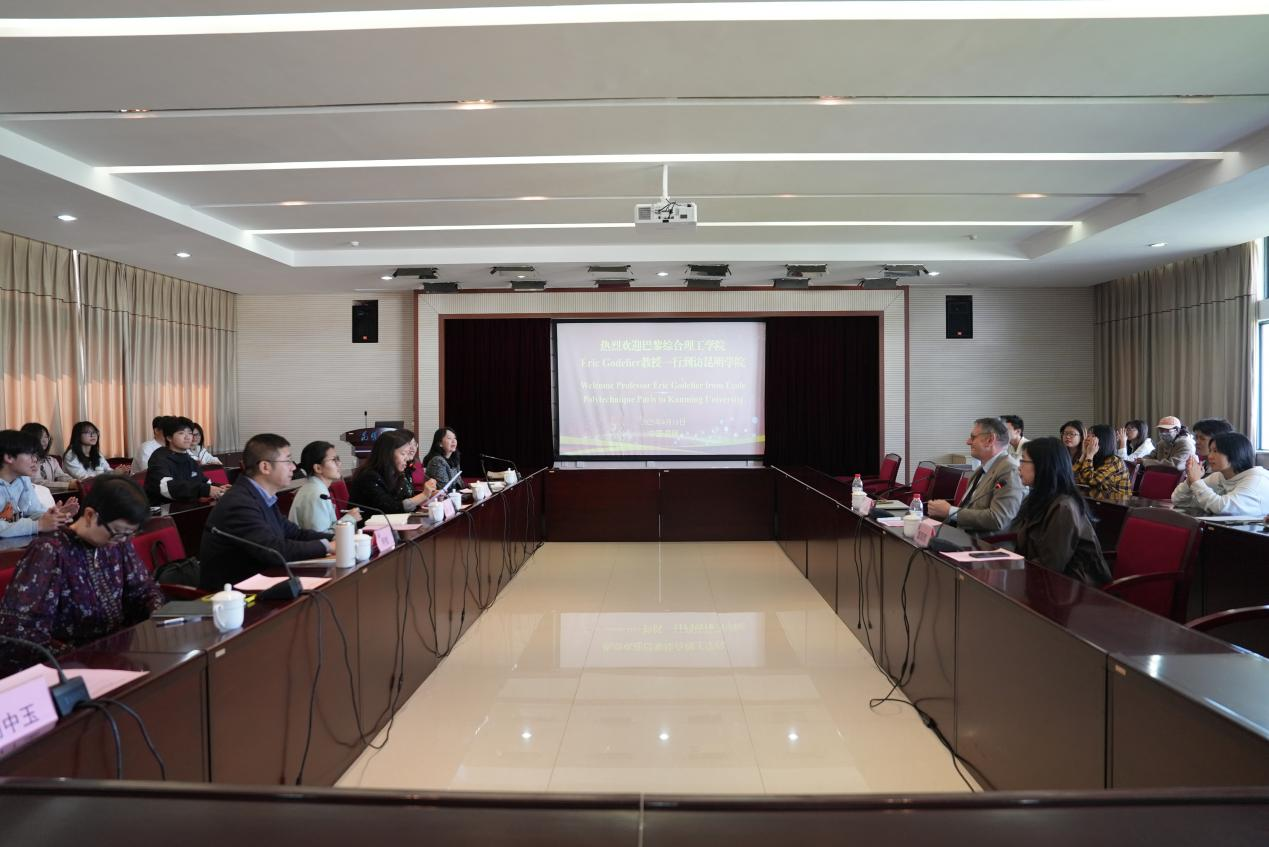 4月18日,法国巴黎综合理工学院教授艾瑞克(Eric Godelier)、上海交通大学巴黎卓越工程师学院院长助理、中国高等教育会中外合作办学研究分会监事章丽辉教授一行到访beat365官方网站,为昆院师生带来了题为《中法工程教育与科技创新转移》的精彩学术讲座。对外合作交流处、科学技术处、教务处负责人以及经济管理学院、人文学院、信息工程学院、机电工程学院师生代表参加座谈。