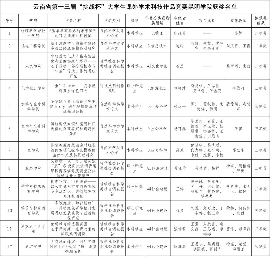 近日,云南省第十三届“挑战杯”大学生课外学术科技作品竞赛获奖名单公布,beat36512项作品喜获佳绩。