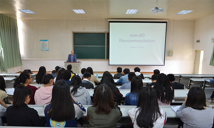 讲座中,张全贵博士解释了什么是推荐系统。并以淘宝为例,深入分析了像淘宝这样的应用软件就需要推荐系统为使用者推荐相关商品,推荐系统会根据数据分析,自动推荐客户可能需要的东西。他还展开讲述了推荐系统涉及的各种领域和其他广泛用途,并就推荐系统中可能出现的一些问题进行了分析,对这些问题提出了解决方案,介绍了解决途径。随后,张全贵博士表示,希望有对人工智能、大数据等各方面有兴趣的同学能与他进行深入交流。