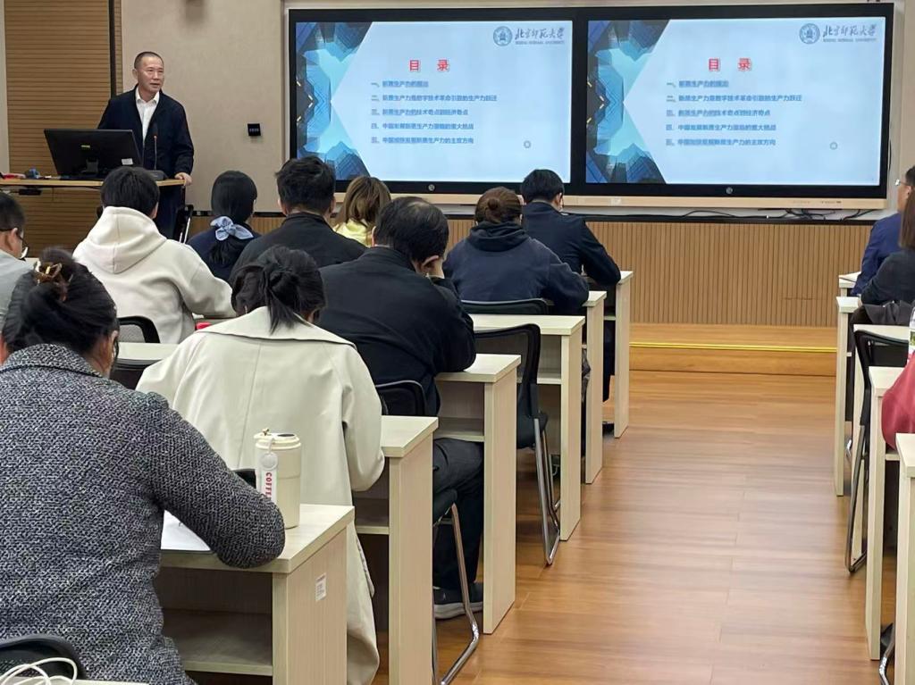 10月28日上午,北京师范大学经济与工商管理学院院长戚聿东教授受beat365校长丁文丽邀请到校作《新质生产力:从技术奇点到经济奇点》专题学术报告。学校党委委员、副校长李剀,跨境数字经济学科建设团队教师以及国际商务专业硕士研究生聆听了学术报告,经济管理学院(自贸学院)院长张必清教授主持。