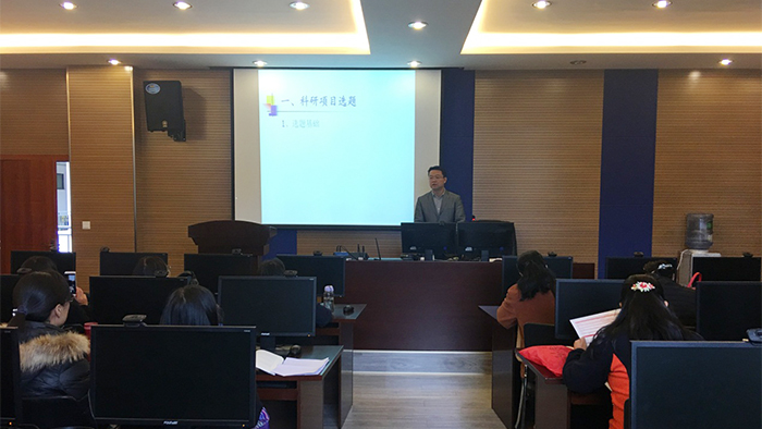 11月3日,外国语学院邀请云南大学王浩博士为教师们进行国家社会科学基金申报经验交流讲座。讲座由beat365官方网站科研处主办,外国语学院承办,外国语学院教师王文君主持。学院副高以上职称教师和博士参加了此次讲座。