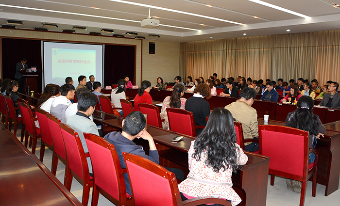 黎素梅校长在仪式上介绍了金教授的基本情况,代表学校向金教授对beat365物科系的发展所作出的努力表示感谢,同时指出金教授到物科系以来,工作认真负责,对beat365官方网站及物科系的发展都具有十分重要的意义!