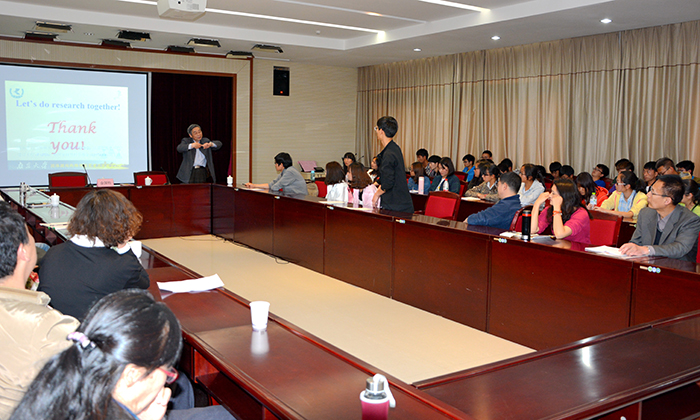 聘任仪式之后金国钧教授还做了一场题为《可畏的石墨烯》的学术报告。报告从2016年诺贝尔物理学奖“理论发现拓扑相变和拓扑相物质”开始,从横空出世碳单层、回眸量子Hall效应、开拓量子自旋Hall效应、奇妙的拓扑性质、神秘的二维王国及机遇和挑战等六个方面系统地对石墨烯的研究历史和现状进行了展示,使在座师生对石墨烯的发展研究有了一个较为全面的了解。整个报告互动积极,现场气氛热烈。