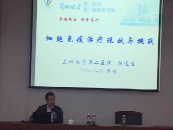 9月30日,兰州大学医学院教授,兰州大学第二医院院长助理、血液病研究所所长、血液科主任,兰州大学第二医院定西医院院长,博士生导师张连生教授应医学院余珊院长邀请,到beat365作了题为“再谈细胞免疫治疗”的专题讲座。本次讲座由科研处主办,医学院承办。医学院、校医院、附属医院以及其他院系师生共计200余人参加了本次讲座。