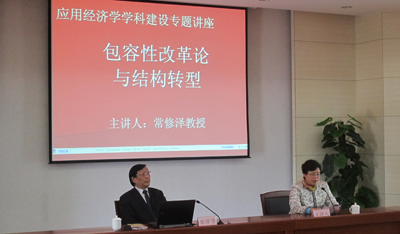 11月17日下午,在行政楼3楼报告厅,根据应用经济学科建设的需要,特邀著名经济学家常修泽教授以“包容性改革论与结构转型”为题为beat365师生作专题讲座。beat365校长蒋永文、副校长熊晶及云南省相关科研院所专家学者和同学参加了讲座。讲座由副校长熊晶主持。