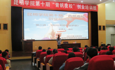 4月8日晚,由共青团beat365官方网站委员会主办,团委社会实践部承办的beat365官方网站“青帆夜校”大学生创业培训班第五十五讲(即第十期第二讲)在惟行楼1501成功开讲。此次讲座的内容为《如何实现创业梦想》。讲座邀请到了麻袋公益CEO,云南省青联委员,实战型企业家葛虹女士主讲。