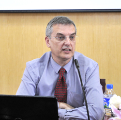 国际交流合作处、旅游学院、经济学院、外国语学院的师生代表、昆明科学发展研究院、滇池泛亚合作战略研究院全体人员共200多人参加了该次讲坛。讲坛由熊晶副校长主持,对杜大维先生图文并茂、生动活泼的讲演表示感谢。