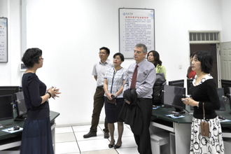 在熊晶副校长、李翔副校长的陪同下,杜大维先生参观了经济学院和旅游学院的教学实验室。并在旅游学院的酒吧实验室进行了座谈交流。
