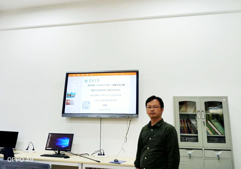 7月3日、7月10日,“人文学术沙龙”连续两周举行“西南边疆与历史文化研究中心”系列讲座。第一场讲座由熊开万博士主讲,题目为《礼化:地方精英与清朝改土归流后哀牢山区三属地的边疆治理》。第二场讲座由许振政博士主讲,题目为《云南边疆移民与侨乡社会的形成与演变——以盈江县昔马镇为例的研究》。两场讲座吸引了大批自愿前来的博士、教授以及硕士研究生,大家就两位博士的讲座内容提出了许多富有针对性与建设性的意见。