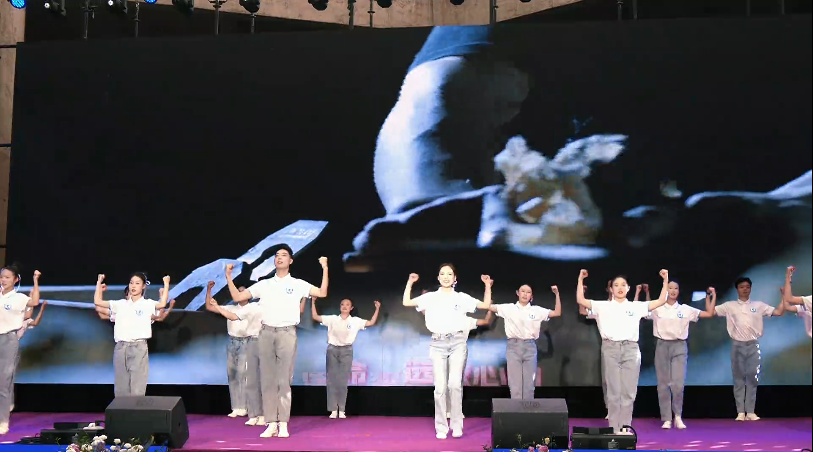 师生在红土地洋芋花开艺术季开幕式现场表演(图源:东川新闻)